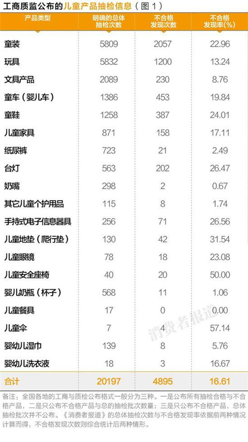 2017年5月,《消費(fèi)者報(bào)道》通過(guò)梳理全國(guó)126個(gè)工商與質(zhì)檢部門10年來(lái)公開(kāi)的20197條兒童產(chǎn)品抽檢數(shù)據(jù),作出不合格品牌黑榜警示,以及重點(diǎn)不合格產(chǎn)品類型的消費(fèi)建議。