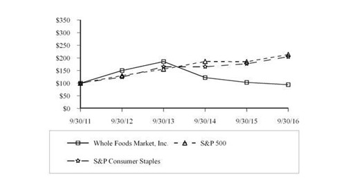 對于這般業(yè)績,股東們顯然也是不太滿意,最直接的表現是13年之后,全食的股價再也沒能跑贏大盤,且一路走低。