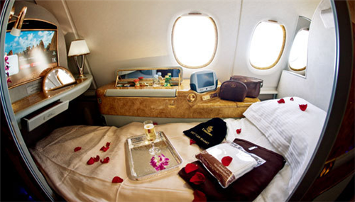 僅僅讓機(jī)艙變得高科技還不夠。一些航空公司的機(jī)艙也朝酒店化的方向設(shè)計(jì),阿迪哈德航空就推出了第一個空中包房,12平方米的空間內(nèi)包括獨(dú)立的客廳、衛(wèi)生間和擁有雙人床的臥室,以及專屬的廚師和管家。