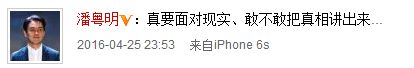 近日,董潔帶著兒子頂頂上真人秀的節(jié)目在網(wǎng)絡(luò)熱播,單親媽媽和兒子的溫馨有愛互動感動了很多人,董潔母子也圈了很多粉,但今天上午,潘粵明突然發(fā)微博稱:“真要面對現(xiàn)實、敢不敢把真相講出來…”這是什么情況?難道這曾經(jīng)恩愛、后來互撕的昔日情侶,要再度開撕?