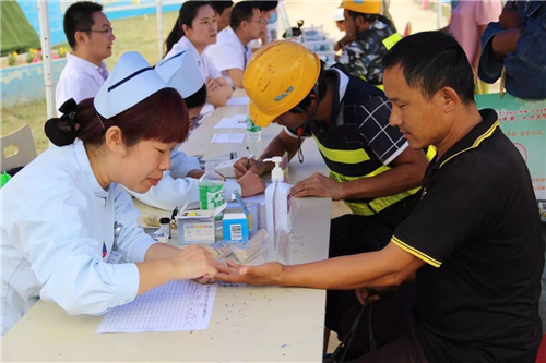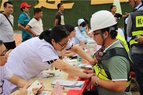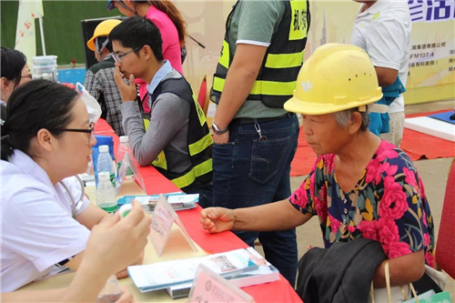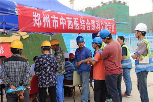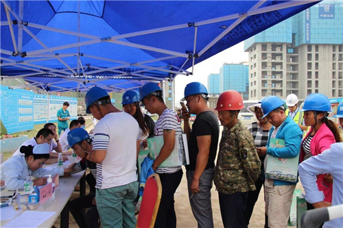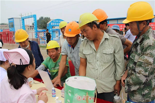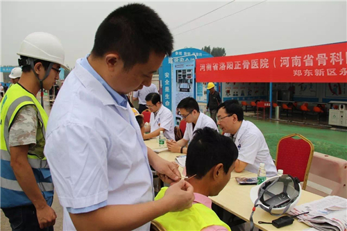 一大早,五大醫(yī)院的白衣天使們,就來到了中建三局鄭州航空港棚戶區(qū)改造的施工現(xiàn)場。開始準(zhǔn)備工作,希望能夠更好地為建筑工人們做健康檢查。