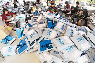 快遞公司員工在倉庫外就地將包裹掃描后裝車。阿里巴巴發(fā)布數據稱,淘寶網平均每分鐘售出4.8萬件商品。