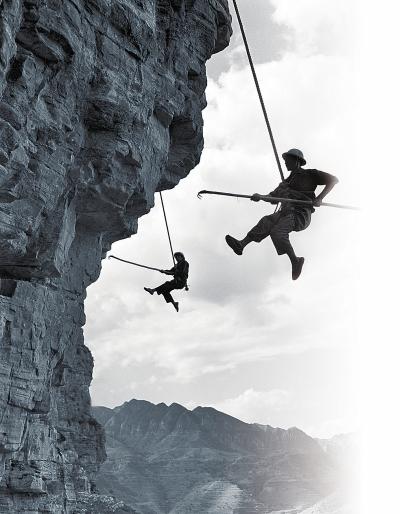 和楊貴第二次見面是在1960年2月,春節(jié)剛過,寒風(fēng)凜冽刺骨,那時,魏德忠去林縣采訪山區(qū)建設(shè)情況,車行至山腳下,當(dāng)聽到崖上開鑿打洞的聲音時,循聲望去,只見一個個腰系繩索,懸掛在崖壁上的開鑿巖石的身影??吹蕉嗳苏谛藿ㄋ恼鸷硤雒妫貏e激動,“這不是當(dāng)年的愚公移山嗎?”