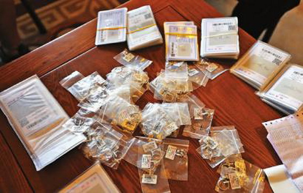 在工行人民廣場(chǎng)支行,老鳳祥負(fù)責(zé)人拿出發(fā)貨單,一一清點(diǎn),65枚鉆戒及證書(shū)一個(gè)不少,每枚鉆戒上都有價(jià)簽,總價(jià)值近100萬(wàn)元。確認(rèn)失主無(wú)誤、失物數(shù)量無(wú)誤后,劉鐵峰將鉆戒移交給民警和老鳳祥負(fù)責(zé)人,并長(zhǎng)長(zhǎng)地舒了一口氣說(shuō),“這回我心里的大石頭終于落地了!”(記者易玲)