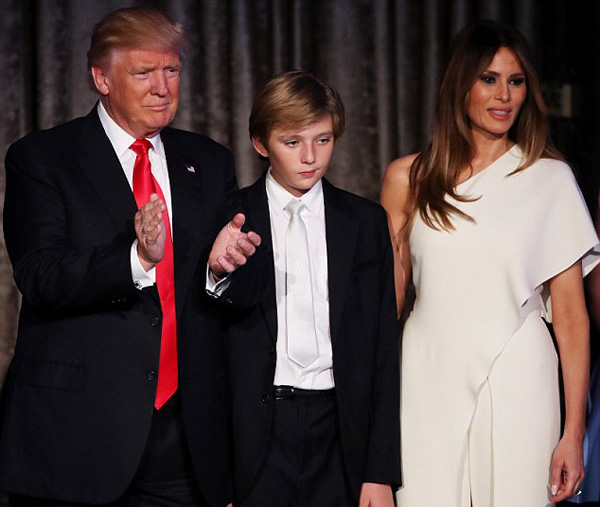 國(guó)際在線專稿:據(jù)英國(guó)《每日郵報(bào)》11月20日?qǐng)?bào)道,美國(guó)新當(dāng)選總統(tǒng)特朗普日前表示,自己將于明年1月20日入住白宮,但妻子梅拉尼婭和10歲的小兒子巴倫要繼續(xù)住在紐約的特朗普大廈,直到明年6月巴倫本學(xué)年學(xué)業(yè)結(jié)束。此番言論卻惹惱了紐約當(dāng)?shù)厥忻?,他們?dān)心安檢、封路等措施會(huì)更加惡化城市的交通狀況。