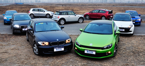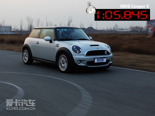 本組首先登場(chǎng)的是來自于寶馬公司的經(jīng)典前驅(qū)小車MINI CooperS(點(diǎn)擊上圖進(jìn)入MINICooperS測(cè)試文章),相信大家在看過幾期亮相性能轎車測(cè)試文章之后對(duì)我們的測(cè)試賽道的狀況有了較深刻的了解,這條本用于卡丁車競(jìng)技的賽道路窄、彎多,直線距離也比較短,完全不吃大排量、大身材那一套,想在這個(gè)賽道上有所表現(xiàn),輕量化車身、犀利的彎路表現(xiàn)和穩(wěn)定的制動(dòng)系統(tǒng)非常重要。MINI Cooper S的動(dòng)力重量比占了很大優(yōu)勢(shì),寶馬公司對(duì)于運(yùn)動(dòng)調(diào)教的造詣也慷慨的應(yīng)用在了這輛小車身上,車身各部件的平衡近乎完美,除了不太爭(zhēng)氣的輪胎之外,我們很難找到它跑不快的理由。