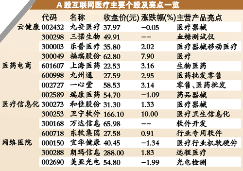 有機構人士表示,下一個金礦可能是互聯(lián)網(wǎng)同醫(yī)院、醫(yī)藥、藥房等醫(yī)療領域的聯(lián)姻。記者統(tǒng)計發(fā)現(xiàn),天堂硅谷、紅杉資本、云峰基金、力合創(chuàng)投等一大批私募和PE們都已提前布局互聯(lián)網(wǎng)醫(yī)療。在A股市場上,部分互聯(lián)網(wǎng)醫(yī)療潛力股投資者可適當關注。