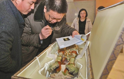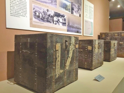 據(jù)了解,臺北·歷史博物館與河南省素有淵源,十幾年前,河南博物院就與歷史博物館建立了姐妹關(guān)系,開創(chuàng)了兩岸博物館締結(jié)姐妹關(guān)系的先河??谷諔?zhàn)爭爆發(fā) 后,民國河南省政府為保存文物,輾轉(zhuǎn)將當(dāng)時河南博物館的精品由河南運至漢口、重慶,其中38箱、共5000余件組文物最終運到中國臺灣。這批文物后被撥交 臺北·歷史博物館,成為該館館藏重要基礎(chǔ)。昨日展覽現(xiàn)場記者注意到,4只飽經(jīng)滄桑的木箱也被擺在展廳入口處的展臺上,外表還留有編號和封條,頗為引人注 意,它們正是那批河南文物1937年南遷時所用的包裝箱。
