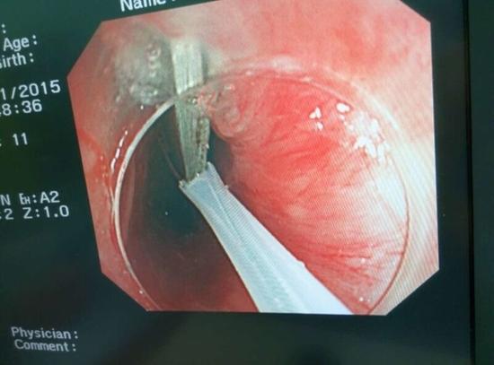 隨后,范醫(yī)生先用圈套器套取出了長10厘米的鑷子,再一個(gè)一個(gè)地取出了打火機(jī)。整個(gè)取出過程小心謹(jǐn)慎而又一氣呵成,只用了不到10分鐘。