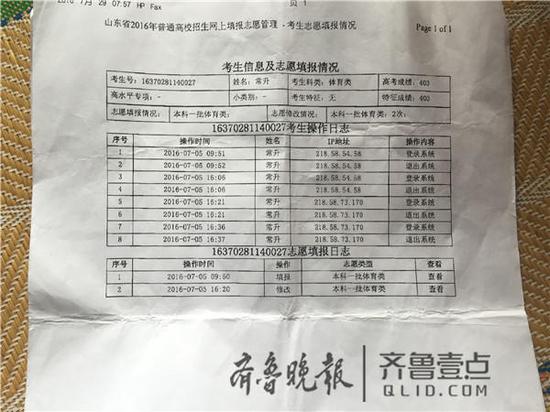 后來,他們從青島市招生辦網(wǎng)上填報(bào)志愿系統(tǒng)了解到,7月5日上午10點(diǎn)左右報(bào)完志愿后,下午4點(diǎn)20分,常升的志愿被修改,一志愿被改為了魯東大學(xué)社會體育指導(dǎo)與管理專業(yè)。