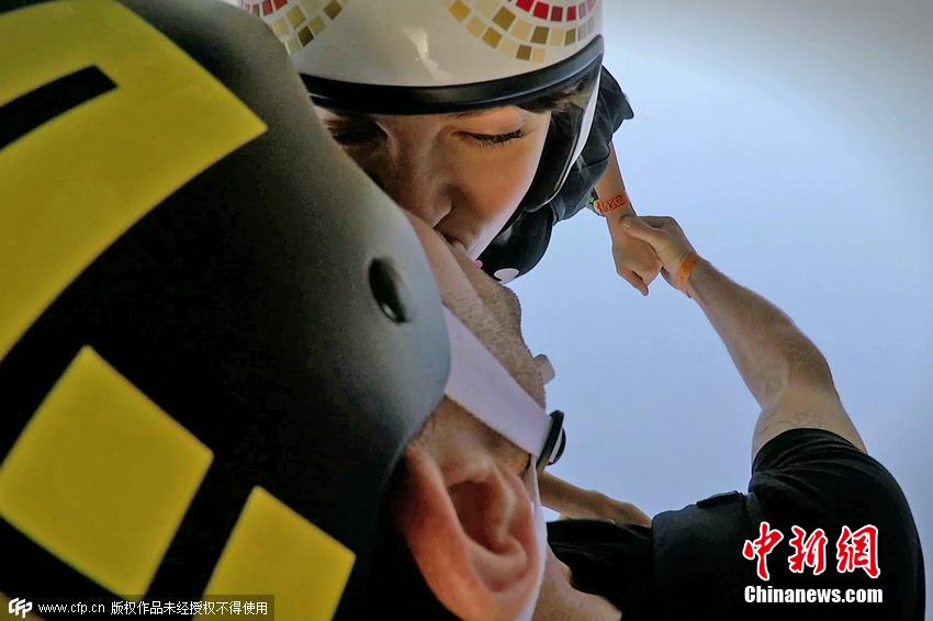 羅伯塔·曼奇諾和諾亞·巴恩森都是知名跳傘運(yùn)動員,他們跳傘時在高空中的親吻簡直可以稱為“世界最瘋狂之吻”。 圖片來源:CFP視覺中國