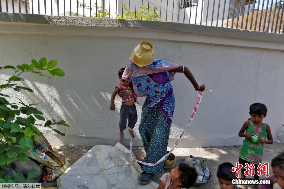 5月18日消息,印度艾哈邁達(dá)巴德,印度婦女Sarta Kalara用帶子綁住15個(gè)月大女兒的腳踝拴在固定的地方防止其亂跑,Kalara在附近的一個(gè)建筑工地工作,為了安全想出這樣的方法,盡管孩子哭鬧,但她稱(chēng)別無(wú)辦法。