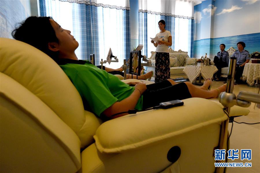 6月26日是國際禁毒日,今年的主題是“無毒青春健康生活”。在禁毒日前夕,記者走進了河南省唯一的女子強制隔離戒毒所及唯一的未成年人強制隔離戒毒所。近年來,戒毒所注重對戒毒人員的溫情關(guān)懷救助,搭建戒毒治療綜合性平臺,努力為戒毒人員打造“溫馨之家”,設(shè)置了瑜伽室、健身室、心理咨詢室等場所,通過開展各種體育鍛煉、心理咨詢、職業(yè)技能培訓以及社會適應(yīng)性教育等活動,幫助戒毒人員強化體能、修復身心損害,使他們可以盡快走出困境,融入社會。新華社記者 李安 攝
