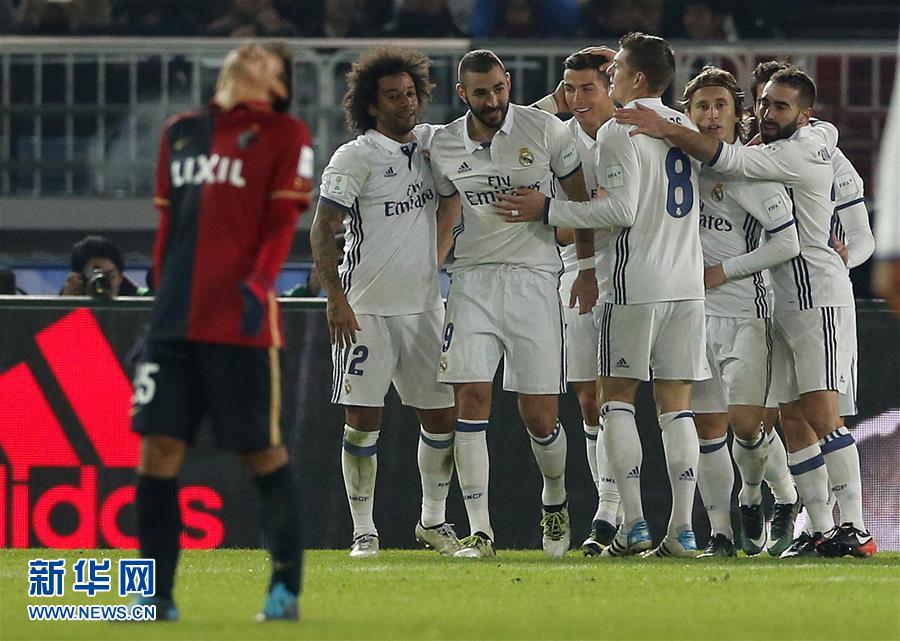 12月18日,國(guó)際足聯(lián)主席因凡蒂諾(右)在頒獎(jiǎng)儀式上與皇家馬德里隊(duì)球員克里斯蒂亞諾·羅納爾多交談。當(dāng)日,在日本橫濱進(jìn)行的2016世俱杯決賽中,歐洲冠軍西班牙皇家馬德里隊(duì)通過(guò)加時(shí)賽,以4比2戰(zhàn)勝日本J聯(lián)賽冠軍鹿島鹿角隊(duì),奪得冠軍。新華社/路透