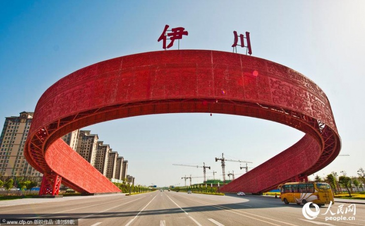 洛陽市伊川縣洛伊快速通道伊川界的伊川北大門建成,設(shè)計雷人,既像是一條紅腰帶,又酷似一個圈套,遭到網(wǎng)友虐稱:進出城要鉆“褲腰帶”。