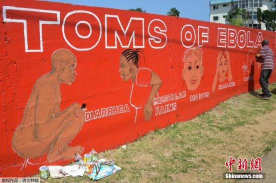 當?shù)貢r間9月8日,在利比里亞,蒙羅維亞街頭,一名叫斯蒂芬·多伊的藝術(shù)家在墻上創(chuàng)作壁畫向人們介紹致命的埃博拉病毒病發(fā)癥狀。世界衛(wèi)生組織8日發(fā)出警告,利比里亞已經(jīng)成為西非受埃博拉疫情肆虐最嚴重的國家,該國因疫情死亡的人數(shù)已經(jīng)占整個西非發(fā)病死亡人數(shù)的一半以上。