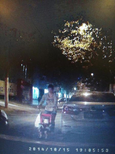 童先生的車載記錄儀拍下的畫面,女子停留在車前頭。