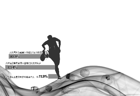 據(jù)2010年的中國(guó)慢病行為危險(xiǎn)因素監(jiān)測(cè)的數(shù)據(jù)顯示,80.9%的家庭人均每日食鹽攝入量超過(guò)5克;83.4%的家庭人均每日食用油攝入量超過(guò)25克。我國(guó)居民經(jīng)常鍛煉的比例,18歲及以上居民中僅11.9%的人經(jīng)常鍛煉。
