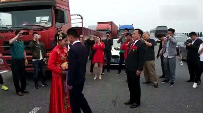 高速上結(jié)婚誰(shuí)見過(guò)?新郎接親遇堵車 高速現(xiàn)場(chǎng)拜天地