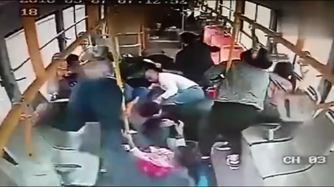 公交車未按定規(guī)??勘蛔肺?車內乘客瞬間“亂飛”