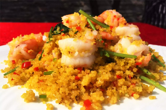 小米炒蝦球的制作方法: