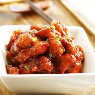 6.將油再次燒熱至沒有水的劈啪聲,倒入初炸的肉丁復(fù)炸至金黃色撈出控油。