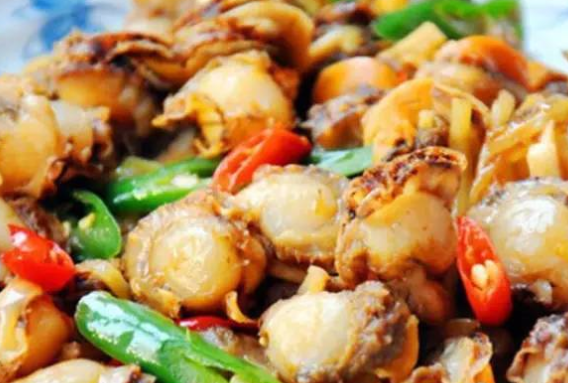 5.轉(zhuǎn)大火,放焯過的扇貝肉,放之前調(diào)好的汁(步驟2),翻炒幾下即可出鍋。