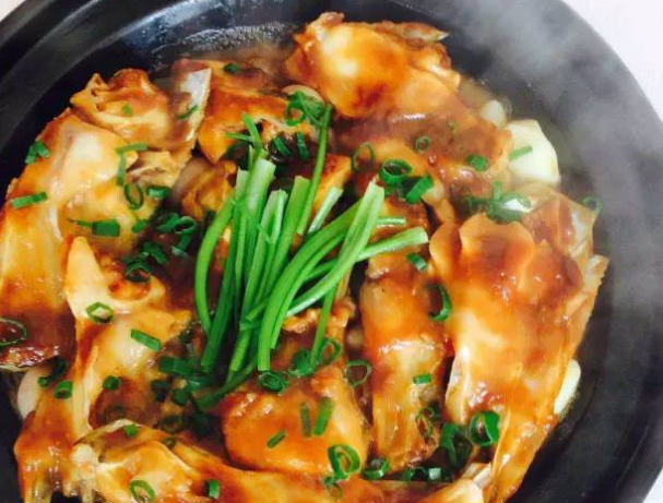 4、快要出鍋時(shí),順著砂鍋邊加適量料酒!最后撒上香菜段和小蔥花即可!