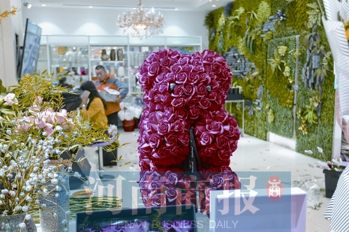 商戶(hù)陳玉稱(chēng),七夕的主角還是紅玫瑰。“去年流行‘抱抱桶’,今年流行‘抱抱熊’?!鄙虘?hù)何艷威稱(chēng),“抱抱熊”是用紅玫瑰制作的,這種玫瑰不是鮮切花,而是皂花,幾乎和真玫瑰一樣,但比真花更耐放,只要不碰水,能放兩年左右。