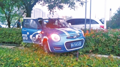 昨日上午10時許,大河報記者跟著鄭州市公安局交巡警支隊直屬六大隊民警,來到鄭東新區(qū)CBD如意湖畔的千璽廣場。事故發(fā)生地點位于千璽廣場西南側(cè)的一處廣場上,這里有一處共享汽車停車場。記者發(fā)現(xiàn),這里共有6輛共享汽車,出事的豫A5A32B共享汽車是一輛藍白色搭配的力帆汽車,停在綠化帶內(nèi),車身有碰撞痕跡。停車場東北角,一輛白色豫A牌照奔馳轎車左前臉位置受損。