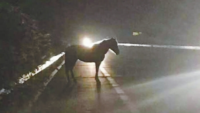 9月2日晚,一輛裝有30多匹馬的貨車行駛在連霍高速上,因貨車后門沒有鎖好,在途經(jīng)連霍高速310公里南半幅時(shí),一匹馬從車上掉下來后在雨中游蕩,過往車輛紛紛躲避,情況十分危險(xiǎn)。商丘高速交警聞?dòng)嵹s來,迅速采取措施,經(jīng)過20多分鐘努力,終于將這匹馬控制,并連夜交還給丟馬的貨車貨主。