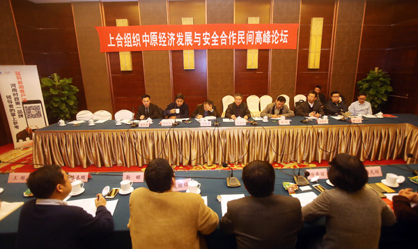 12月13日上午,北京河南大廈四層中原廳內高朋滿座,思想碰撞,創(chuàng)意迭出。由河南省新聞出版廣電局、北京河南大廈主辦,大象融媒·大象智庫、大象融媒·猛犸新聞 、香港天溯智庫承辦的“上合組織和中原經濟發(fā)展安全與合作2015民間高峰論壇”在這里成功舉辦。中國上海合作組織國家研究會中心高級顧問王海運少將等一批國際區(qū)域經濟、安全合作領域的國家級研究專家和有影響力的實戰(zhàn)派“大咖”圍繞“國際新格局下上合組織的新使命”、“一帶一路戰(zhàn)略的安全保障”、“一帶一路戰(zhàn)略中的中原企業(yè)與地方政府優(yōu)劣勢”、“ 中原企業(yè)在上合組織成員國的商機與風險”等話題展開高端座談。